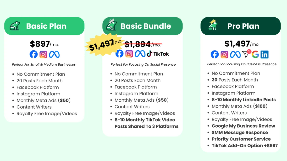 All of our plans have a foundational focus on Facebook & Instagram. When we post to one of these, we're always posting to both. This means it's usually an even share between main platforms to start. We pay close attention to all incoming data on what works and what doesn't, and may shift posts accordingly based on statistics to get the most out of every post.